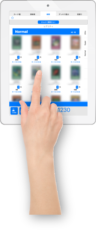 何十万種類とあるトレーディングカードをお客様に画面をタップしていただくだけで、好みのカードをお選びいただけます。